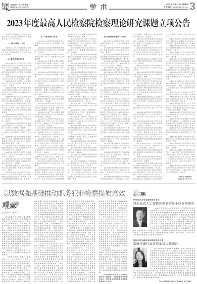 2023年度最高人民检察院检察理论研究课题立项公告
