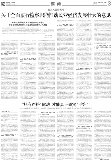 关于全面履行检察职能推动民营经济发展壮大的意见