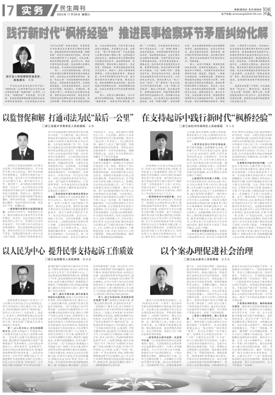 践行新时代“枫桥经验” 推进民事检察环节矛盾纠纷化解