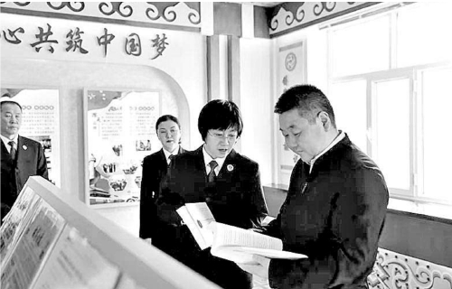 近日,全国人大代表,内蒙古自治区鄂温克族自治旗委副书记、旗长敖慧然(右一)到鄂温克族自治旗检察院调研。实地调研中,敖慧然听取了该院工作汇报,对该院开展的打击整治养老诈骗犯罪、护航未成年人健康成长、优化法治化营商环境等重点工作表示肯定。 本报记者于莹莹 通讯员陈爱琳 车秀茹摄