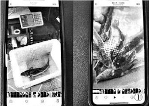 图①:沈某手机里拍摄的长江鮰鱼照片。