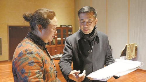 陈小静赴浙江省永嘉县昆剧团调研,与团长徐显眺沟通交流。