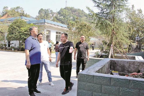 2019年9月28日,王朝阳(左一)赴湖北省建始县业州镇马栏溪村对水污染公益诉讼案件线索进行现场查看督办。 本报通讯员李茂平摄