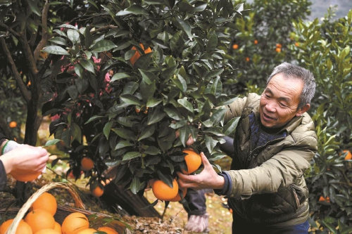 毛相林在采摘柑橘。