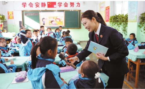 近日,甘肃省秦安县检察院检察官来到该县第四小学,以“提高法治观念学会保护自己”为主题,为同学们带来一场生动有趣的法治小课堂。检察官通过一个个真实案例,告诉同学们如何提高安全防范意识和自我保护能力,有效避免危害发生。 本报记者南茂林 通讯员杨柳摄