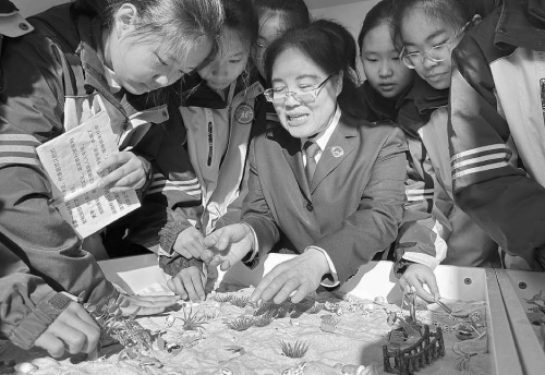 12月5日,山西省沁水县检察院邀请沁水县示范初中50余名初二学生走进该院,开展“青春与法同行暨行走的思政课”实践体验活动。图为在该院未成年人检察工作办公室,孩子们好奇地在沙盘上体验,并和未检干警进行互动交流。