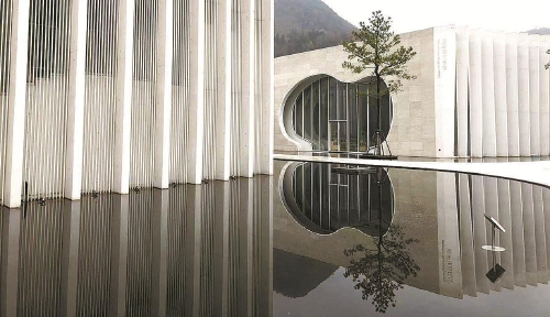 驱车前往泾县时,恰逢阴天,风寒雨冷,万物萧索,但百度图片中那座美如山水画卷的中国宣纸博物馆似乎有种魔力在召唤我。临近馆址,我就被远处的群山吸引住了,如墨般的山峦云雾缭绕,典型的黑白色徽派建筑点缀其间,炊烟袅袅,宛若人间仙境般绝美。一个雪白的长方形盒子如此周正地镶嵌在山河之畔、浅池之上,仿佛一只承载人类文明和梦想的纸船,正从这里启航,驶向远方。