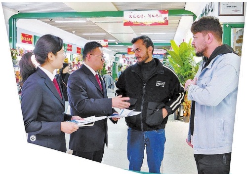 图②:2024年2月,浙江省义乌市检察院检察官向外国客商普及中国知识产权相关法律知识。 本报通讯员陈曦摄(资料图片)
