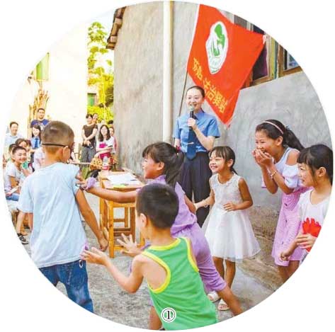图①:2018年8月,“莎姐”检察官走进重庆市永川区三教镇陡沟河村,为近50名农村留守儿童带来一场别开生面的院坝法治课。