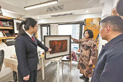 漆器艺术是中华民族的传统瑰宝,涵盖内容丰富,文化底蕴深厚。近日,陕西省西安市灞桥区检察院干警前往陕西省工艺美术大师、西安市漆艺协会秘书长阮兰香的漆艺工作室,了解其对传统技艺保护的看法以及对检察工作的建议。 本报记者王梁 通讯员赵金越摄