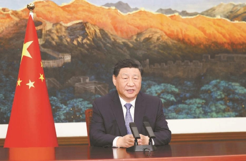 四月二十三日,国家主席习近平向气候和公正转型领导人视频峰会发表致辞。 新华社记者黄敬文摄
