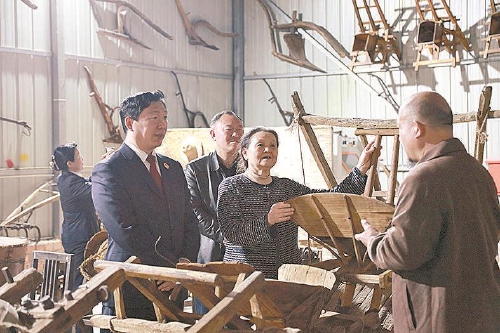 郭建华(右二)代表在河南省开封市祥符区杜良镇与检察官一起在该镇农耕文化博物馆调研。