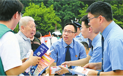 近日,重庆市南岸区检察院检察官在南湖公园广场开展民法典主题宣传。图为检察官耐心解答群众疑问。 本报通讯员江泳 周亚摄