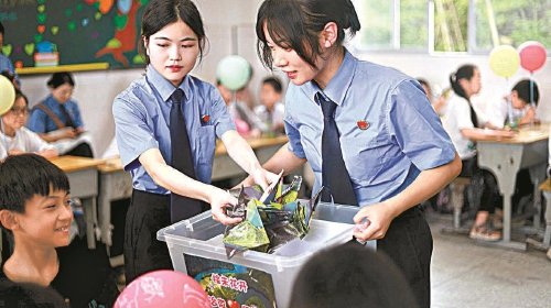近日,江西省铜鼓县检察院检察官走进辖区古桥小学开展“法治进校园”活动。检察官手把手教孩子们叠千纸鹤,在翅膀上写下“公平”“守法”等关键词,寓教于乐中帮助孩子们提升法治意识。