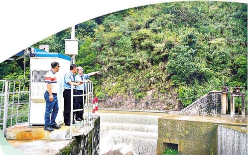上杭县检察院检察官与当地政府工作人员实地查看汀江治理情况。