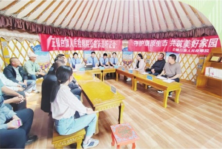 今年5月29日,内蒙古自治区正镶白旗检察院检察长王卫华在满达拉图嘎查党员中心户“蒙古包”里,主持召开草原生态保护公开听证会。