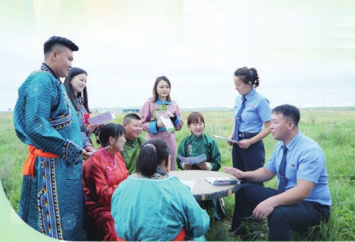 “千里北国草、骑迹边疆行。”2023年7月,内蒙古自治区第一支“乌兰牧骑公益诉讼宣传队”在苏尼特右旗正式成立。这支由检察人员和乌兰牧骑队员组成的队伍,将检察公益诉讼内容巧妙编进歌曲中,让法治好声音传遍草原每一个角落。