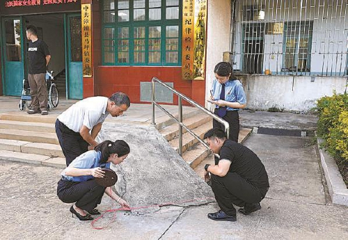 近日,福建省漳浦县检察院联合县残联开展乡镇便民服务中心无障碍环境建设公益诉讼专项监督活动,以法治之力保障残障人士、老年人等特殊群体合法权益。图为该院检察干警联合县残联工作人员调查取证。 本报通讯员蔡坛彬摄