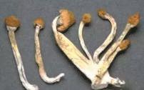 迷幻蘑菇 外形如黄色的“干蘑菇”,其迷幻成分主要由一种含毒性的菌类植物“毒蝇伞”制成,人吸食后会产生强烈的幻觉。