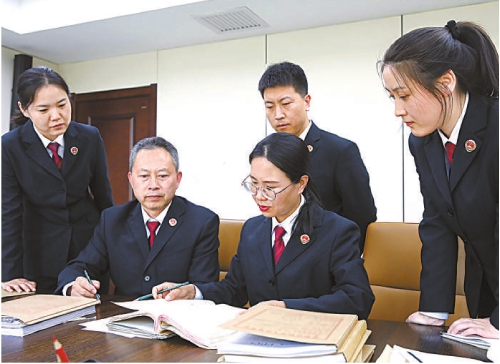 内蒙古自治区呼和浩特市检察院办案组在梳理王晓芳被害案证据,讨论案情。 资料图片