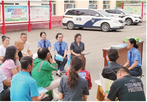 近日,内蒙古自治区呼和浩特铁路运输检察院联合呼和浩特铁路运输法院,深入该市赛罕区黑土凹村开展普法宣讲活动。在村委会前的小广场上,检察官、法官选取群众身边的非法占用农用地、草地、林地等典型案例,给村民们送上一场通俗易懂的“土地公开课”。 本报记者沈静芳 通讯员张思敏摄