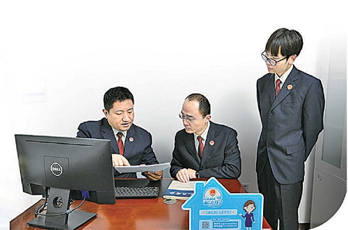 2025年3月,天津市河北区检察院检察官王会更(左一)在专项整治社矫对象“未请假外出”活动中,在区社矫中心和同事们一起分析筛查社矫智能管理系统异常数据,挖掘案件监督线索。