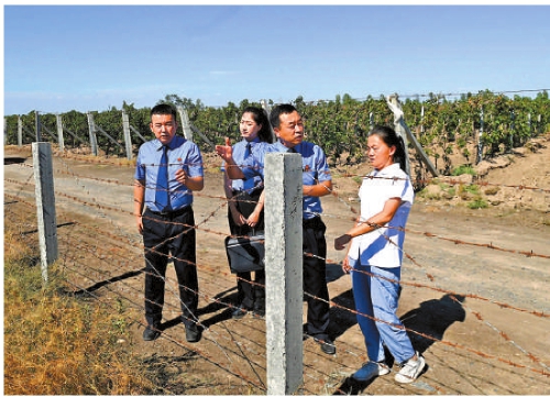 近日,记者跟随最高人民检察院新闻办公室组织的“新时代法律监督工作巡礼·高质效办好每一个案件”媒体采访团,来到了新疆维吾尔自治区昌吉回族自治州呼图壁县,在这里见到了位于一片葡萄园中的五工台烽火台。它的四周拦着围栏,“保护文物”“请勿攀爬”的标识清晰醒目,无声诉说着它的身份与尊严。