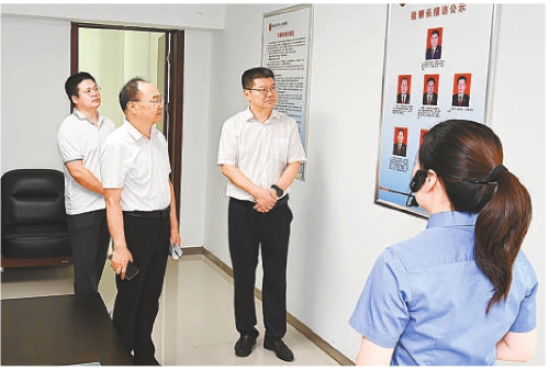王学斌代表(左二)到山东省临沂市河东区检察院专题调研该院公益诉讼检察工作。