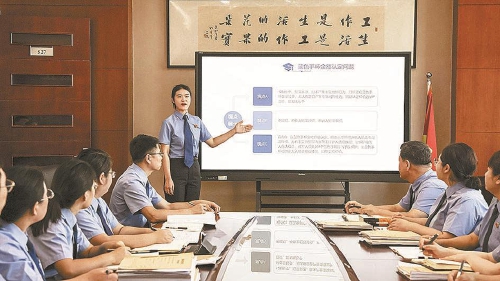 学堂不仅是学习场,更是能力的“演兵场”。起诉书如何做到无一字不精确、无一字不规范?在一堂关于起诉书制作的“精修课”上,该院刑事检察部负责人张亮结合全国优秀法律文书范本和该院自办案件,逐字逐句分析论证逻辑与语言的精准性,让青年干警印象深刻。这种精益求精的高标准、严要求管理模式,正转化为提升办案质效的新动能。该部门定期组织干警观看全国优秀庭审录像、公诉人大赛精彩辩论视频,仔细揣摩控辩技巧与临场应对策略,并由资深检察官、业务竞赛标兵担纲主力,通过模拟讯问、焦点论辩、法律文书讲评等形式,在沉浸式互动中磨炼干警实务技能。