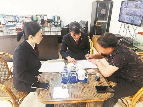 检察官一边严肃地向王某释法说理,告诫他恶意注销公司逃避债务的法律后果,一边耐心与之沟通协商方案。了解到企业有赔偿意愿、但无力一次性赔付的情况后,检察官电话联系了罗某,在宽慰罗某的同时提出分期赔付的意见。因担心分期赔付再生变故,罗某对此十分抵触。检察官耐心劝说罗某并表示,检察机关全程跟进,并联合执行法官共同监督,确保企业按协议履行。