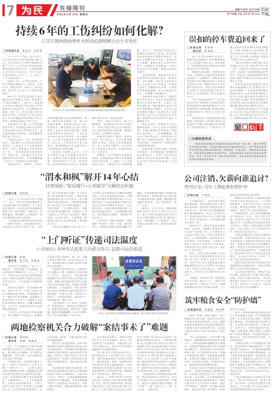 2025年4月,江苏省无锡市、江阴市两级检察机关上下联动,以新时代“枫桥经验”为指引,成功化解一起历时6年的工伤保险待遇纠纷。