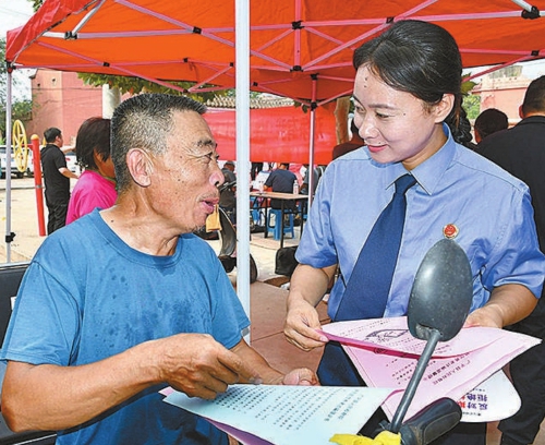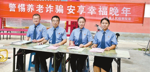 近日,河北省广平县检察院组织检察官走进辖区十里铺镇金安村,开展防范养老诈骗法治宣传活动。检察官结合一个个真实案例,剖析犯罪分子的惯用手法和作案方式,深入浅出地介绍“健康养生型”“投资理财型”等养老诈骗常见类型,提醒老年居民遇事多与子女商量,别轻易向陌生人汇款,守护好自己的“钱袋子”。“看了你们的宣传册,我算知道了,以后碰到说可以免费领礼品,最后让你掏钱买保健品、投资养老项目的,十有八九都是骗子。”活动现场,一位老人跟检察官总结他的学习心得。 (本报通讯员宋文燕)