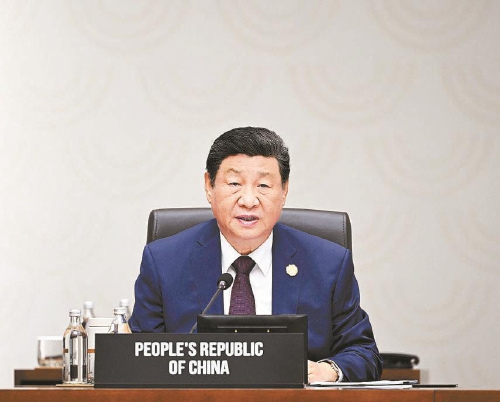 当地时间11月1日上午,国家主席习近平在韩国庆州出席亚太经合组织第三十二次领导人非正式会议第二阶段会议,并发表题为《共同开创可持续的美好明天》的重要讲话。 新华社记者谢环驰摄