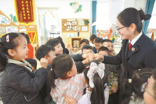 11月4日,江苏省徐州市鼓楼区检察院检察官走进该区某幼儿园,通过趣味问答、情景“过家家”等形式,与小朋友们做起防拐骗、守私密、保安全的系列自我保护游戏,共同以画笔讲故事,畅想“长大后的梦想”,在寓教于乐中以法治温暖护航童年成长。