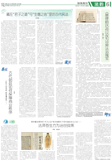 当人们以现代法治视角回望古代法思想时,《明夷待访录》的前瞻性价值得以充分体现,其被视为中国古代极具进步意义的法学著作。近代思想家梁启超在《论中国学术思想变迁之大势》一文中称赞道:“《明夷待访录》之《原君》《原臣》诸篇,几夺卢梭《民约》之席;《原法》以下诸篇,亦厘然有法治之精神。”时至今日,黄宗羲的立法思想仍闪耀着光辉,为当代法治建设提供了珍贵的历史借鉴。
