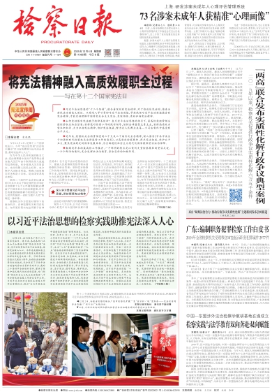 对于检察机关而言,宪法第一百三十四条明确的“国家法律监督机关”定位,是沉甸甸的职责和使命。今年,是习近平法治思想正式提出5周年。全国检察机关将持续推进习近平法治思想的检察实践,大力弘扬宪法精神,坚持“高质效办好每一个案件”,让文本上的宪法真正成为人民群众可感可触可见的司法实践,为推进强国建设、民族复兴伟业提供更加坚实的司法保障。
