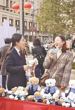 日前,天津市滨海新区检察院检察官在某招聘会现场开展宪法宣传活动。 本报记者陶强 通讯员许方方摄