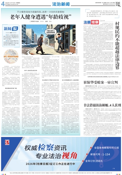 体育法明确规定,国家依法保障公民平等参与体育活动的权利,对未成年人、妇女、老年人、残疾人等参加体育活动的权利给予特别保障。“简单的年龄一刀切,既不符合法律精神,也忽视了老年人的合理需求。”中国社会科学院法学研究所助理研究员苏和生告诉记者。