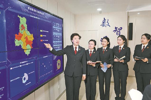 北京市通州区检察院针对北京城市副中心重大工程项目多的区位特点,研发“通薪智护”欠薪讨薪大数据法律监督模型。图为该院检察长李辰(左一)与工作人员就模型构建工作进行探讨。