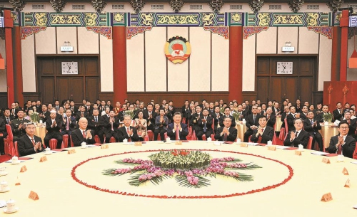 在京中共中央政治局委员、中央书记处书记,全国人大常委会、国务院部分领导同志,全国政协领导同志和曾任全国政协副主席的在京老同志出席茶话会。