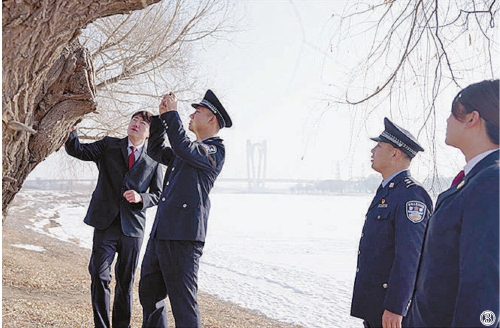 图③:近日,内蒙古自治区呼和浩特市检察院司法警察支队协助检察业务部门就一起公益诉讼案件进行调查取证。