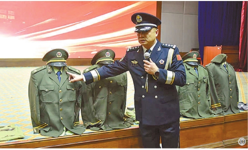 图⑩:2026年1月6日,辽宁省大连市金州区检察院司法警察张磊在庆祝中国人民警察节活动中深情讲述个人珍藏的历代警服背后的岁月故事。