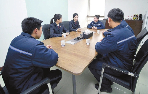 近日,河北省唐山市丰南区检察院检察官赴该区未成年人观护教育基地,看望参与劳动实践的三名涉罪未成年人,了解检企协作观护帮教模式的成效。图为检察官与三名未成年人及指导老师进行交流。 本报通讯员刘秀伟 郝珊珊摄