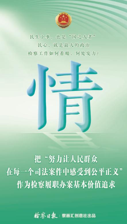 一个个鲜活的案例证明,“高质效办好每一个案件”绝不只是当作口号喊喊,而是引领全体检察人员对每一个民生“小案”都胸怀为民之情、倾注司法关怀,让公平正义走出法典,如“随风潜入夜,润物细无声”般直抵人心。