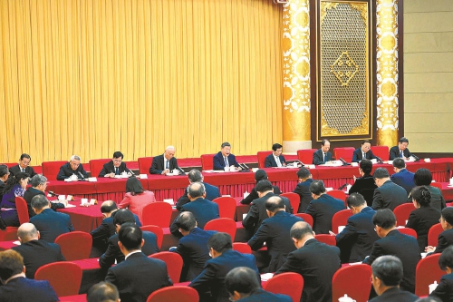 中共中央政治局常委、全国政协主席王沪宁,中共中央政治局常委、中央办公厅主任蔡奇参加看望和讨论。
