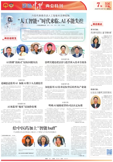今年全国两会,人工智能(AI)成为诸多代表委员关注的火热话题。从深度伪造、算法作恶到AI“魔改”、恶意滥用,人工智能衍生的各种侵权行为令人眼花缭乱。如何把人工智能纳入法治的轨道,使其健康发展?检察履职又该如何融入人工智能治理大局?本报邀请六位全国人大代表、全国政协委员,共议人工智能的法律规制。