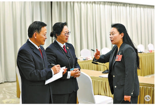 图②:最高检工作人员向全国人大代表张艳秋了解意见、建议。