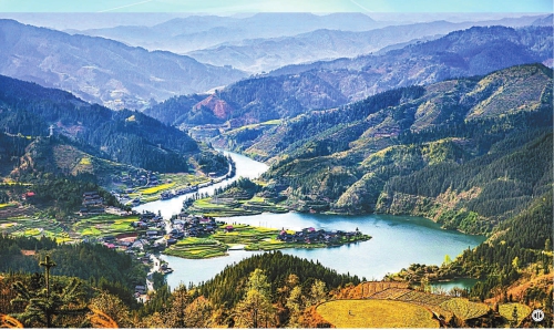 图①:月亮山州级自然保护区航拍图。