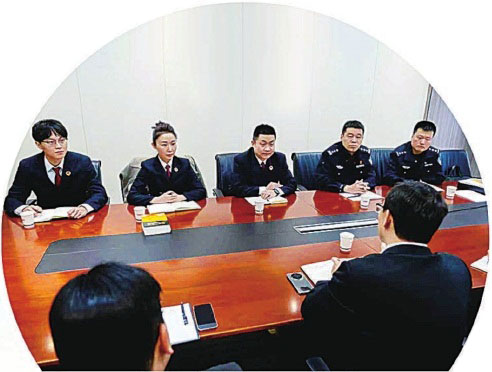 陕西省西安市检察院干警与公安机关工作人员同企业代表面对面交流,深入研究如何解决企业在跨境经营中遇到的知识产权等方面的维权难题,以提供精准司法服务。