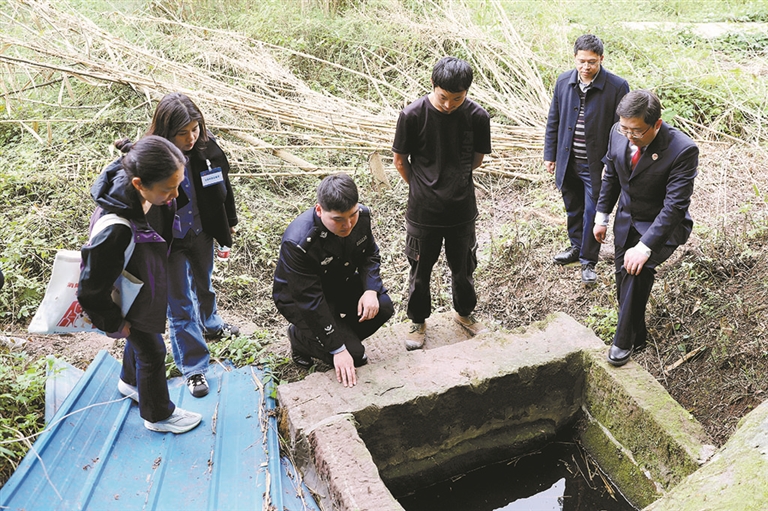 近日,重庆市荣昌区检察院公益诉讼检察官就一起畜牧养殖污染环境案开展调查取证,并邀请人民监督员全程监督。检察官深入养殖污染现场,对污染源及受波及的鱼塘、水井、耕地进行现场勘验,固定证据,同时走访周边群众,全面核实污染损害情况。图为检察官对受污染水井进行现场勘验取证。